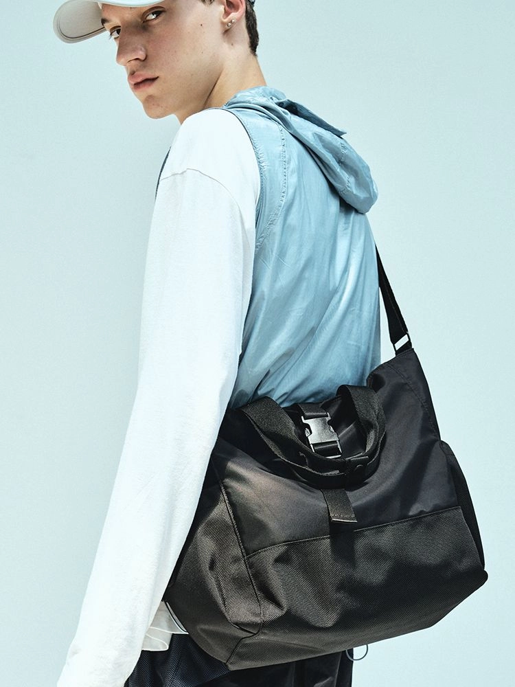 Convenient storage for small everyday items, the Town Mini Crossbag combines sporty design and practicality. Made from tightly woven interlock nylon, it's durable and water-resistance. The combination of black pearl matte metal buckle and saffiano vegan leather with a luxurious finish adds a sense of satisfaction as well as an elegant touch. It offers satisfaction and convenience not only in the daily life but also on a simple trip.