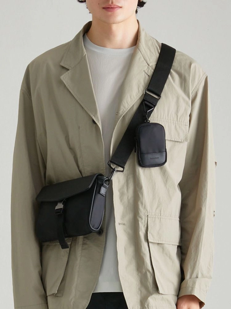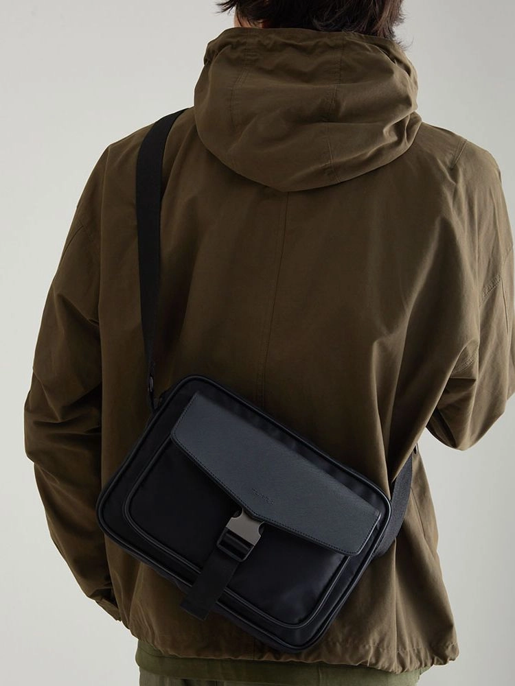 Combined sporty design and practicality for convenient storage of small everyday items and convenient use. Made from tightly woven interlock nylon, it offers durability and water resistance. The combination of black pearl matte metal buckle and Saffiano vegan leather with a luxurious finish not only provides a sense of satisfaction but also adds an elegant touch. The spider sling bag can be used in a variety of ways, including front, back or shoulder bag or hip sack.